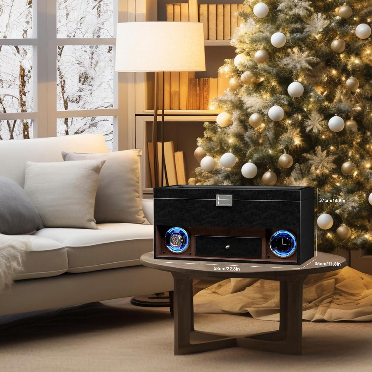 DUKWIN Double Watch Winder Box,Brown Watch Winder for 2 Automatic Watches with 16-Slot Watches Display Case,Brown(Brown)