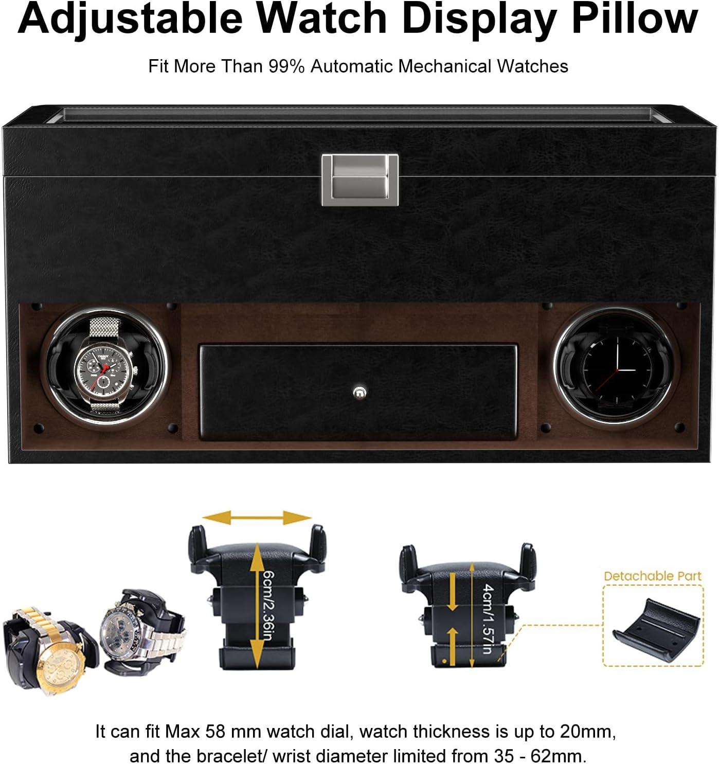 Featuring adjustable watch pillows, our watch winder can accommodate watches of 110-200MM WATCH BAND.