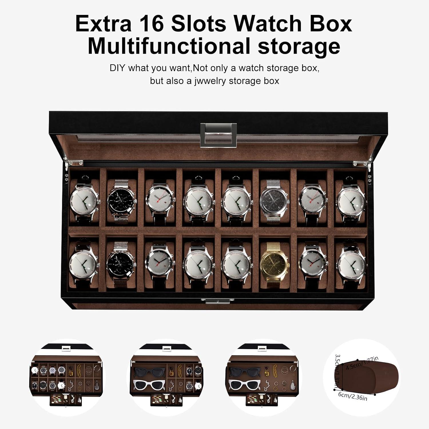 3 IN 1 DESIGN – 2 watch windings, 16-slot watch display case and storage box provide maximum usability in a compact size.