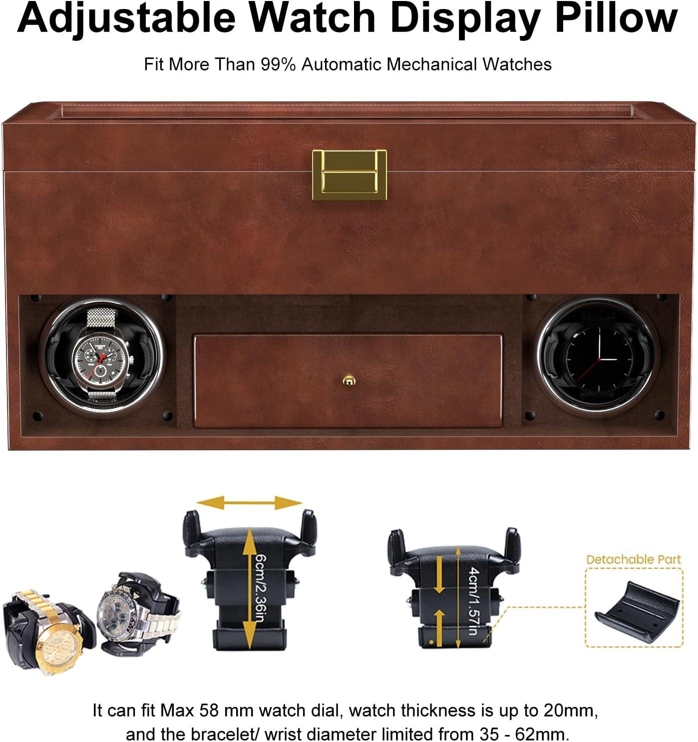 It can fit the maximum 60mm dial, the thickness of the watch is up to 20mm, and the strap/wrist is limited to 35-62mm.
