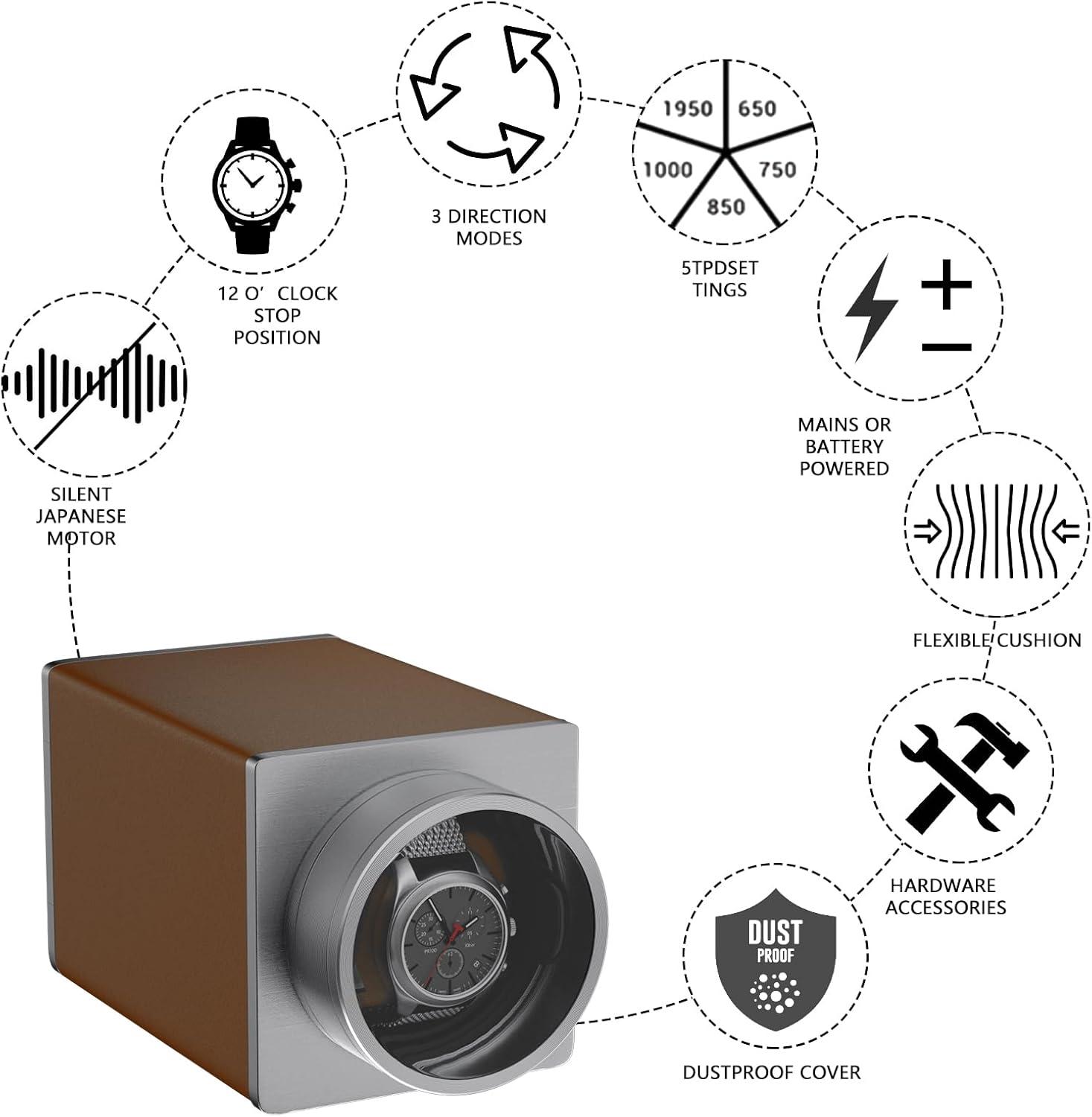 DUKWIN Single Watch Winder with Dual Power Supply, Supper Quiet Motor and Adjustable Watch Pillow, Small Watch Winder for Travel(22D-BR1)