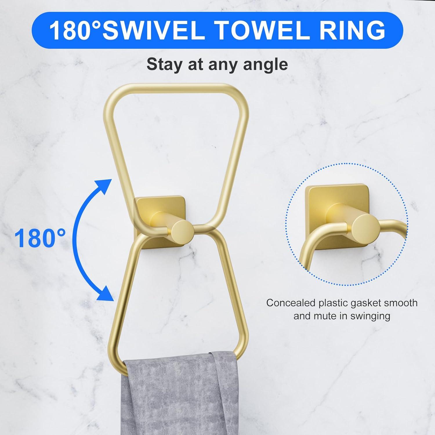 【Matte Gold Towel Ring】The bathroom towel ring features a elegant trapezoidal design and matte gold surface. The modern trapezoidal design adds a sophisticated touch to any decor.