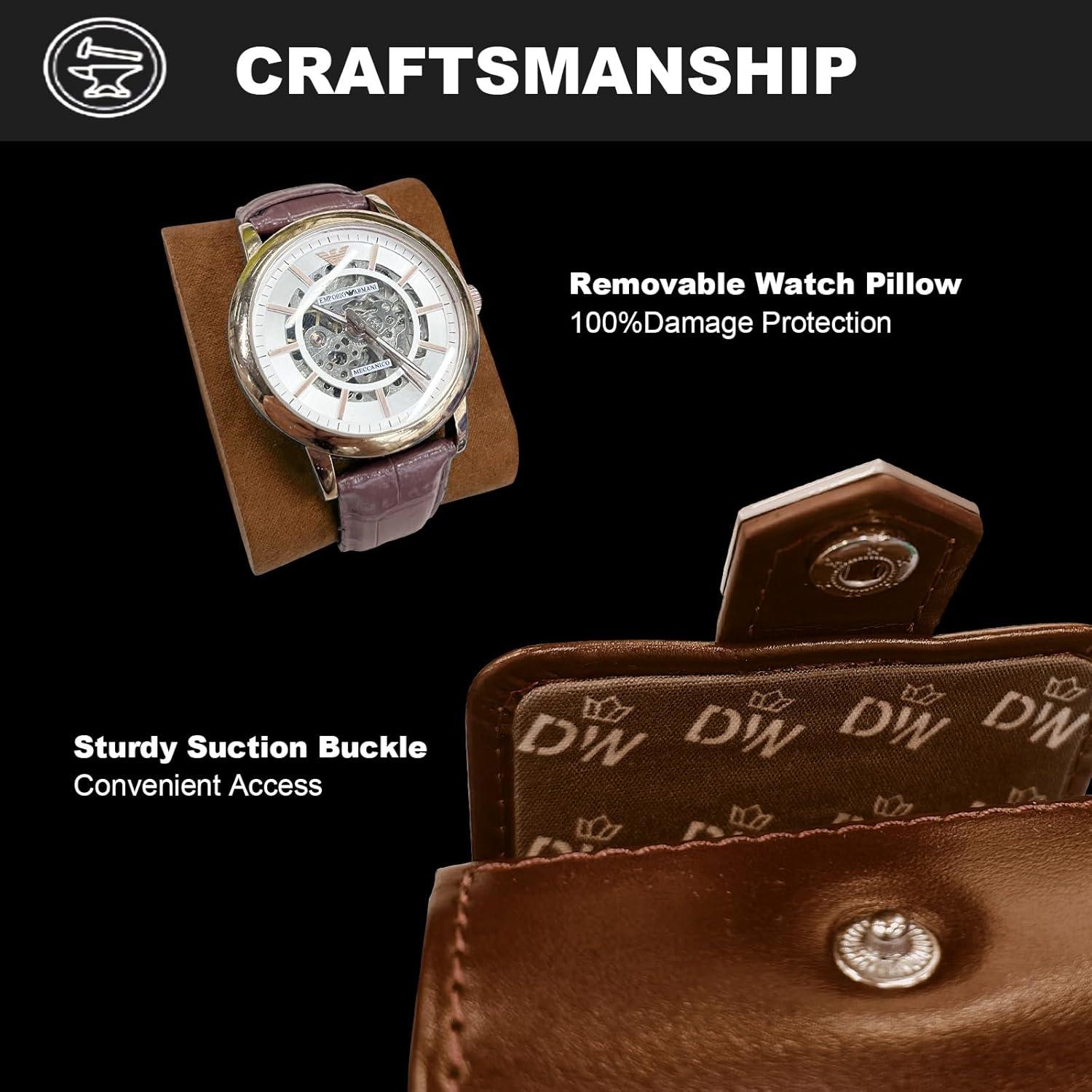 【UPGRADE DESIGN WATCH BOX】- Our watch storage case features an exterior crafted from leather, complemented by a metal button closure and a soft velvet lining. It seamlessly blends fashion with practical functionality, safeguarding your watch while providing an elegant display.