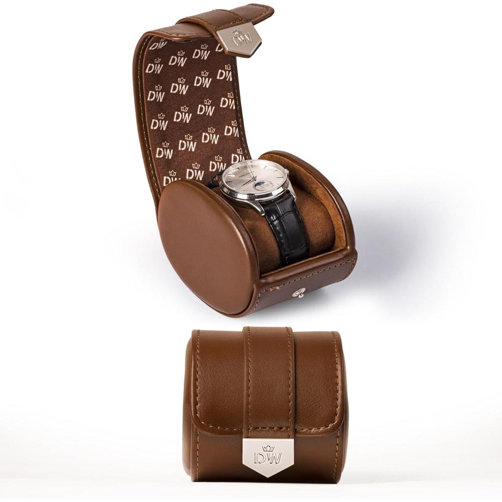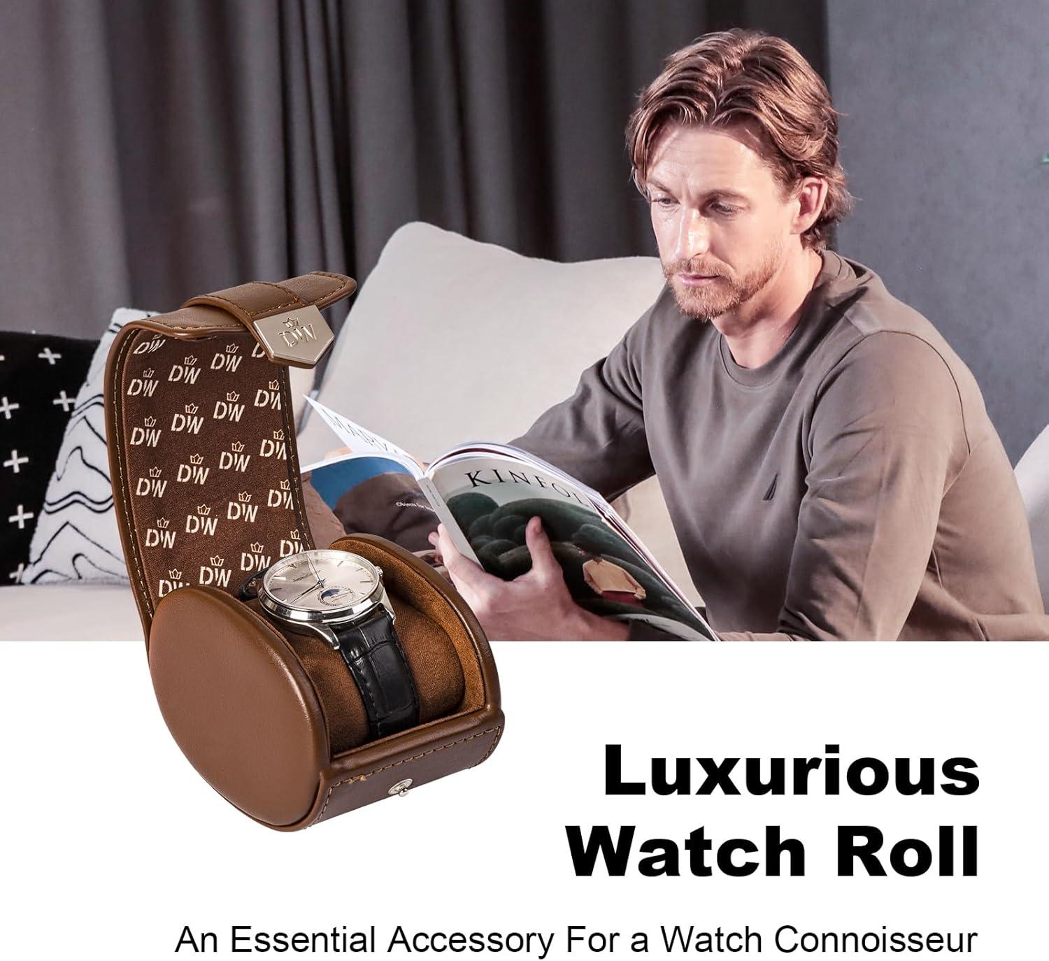 imageDUKWIN Watch Roll for 3 Watches Travel Watch Case Organizer with Removable Pillows for Men and WomenLeather Display Case for Watches Collection and Gift for Anniversary BirthdayBlue Watch StorageBrown for 1