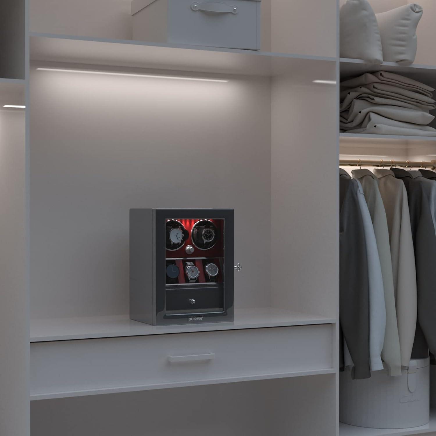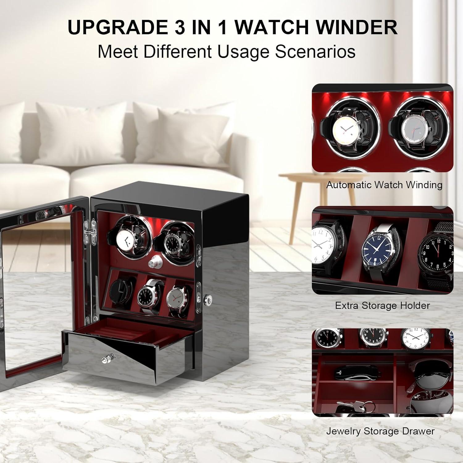 imageDUKWIN Watch Winder for 468 Automatic Watches Lockable Winders with Watch Holders and Jewelry Storage Super Quiet Motor with HighGloss Finish Builtin IlluminationRed Watch Winders for 4 Watches