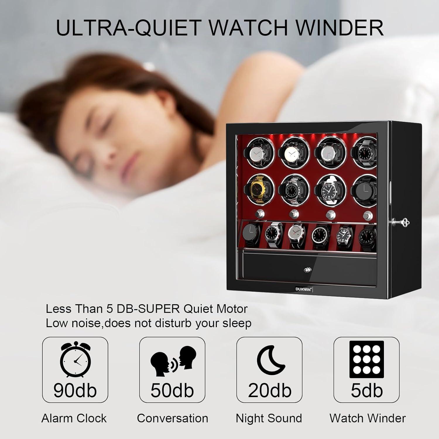 imageDUKWIN Watch Winder for 468 Automatic Watches Lockable Winders with Watch Holders and Jewelry Storage Super Quiet Motor with HighGloss Finish Builtin IlluminationRed Watch Winders for 6 Watches