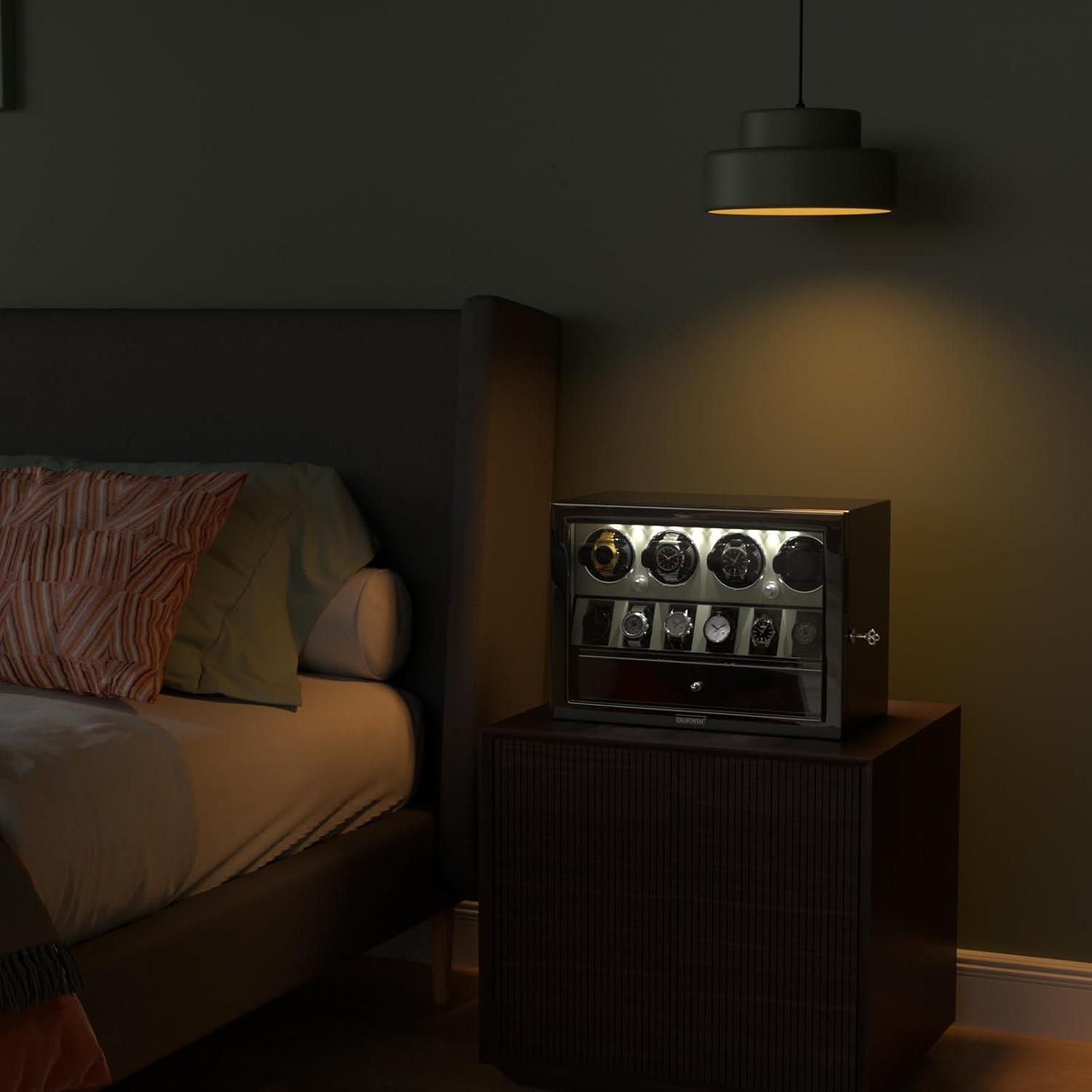 imageDUKWIN Watch Winder for 468 Automatic Watches Lockable Winders with Watch Holders and Jewelry Storage Super Quiet Motor with HighGloss Finish Builtin IlluminationWhite Watch Winders for 4 Watches