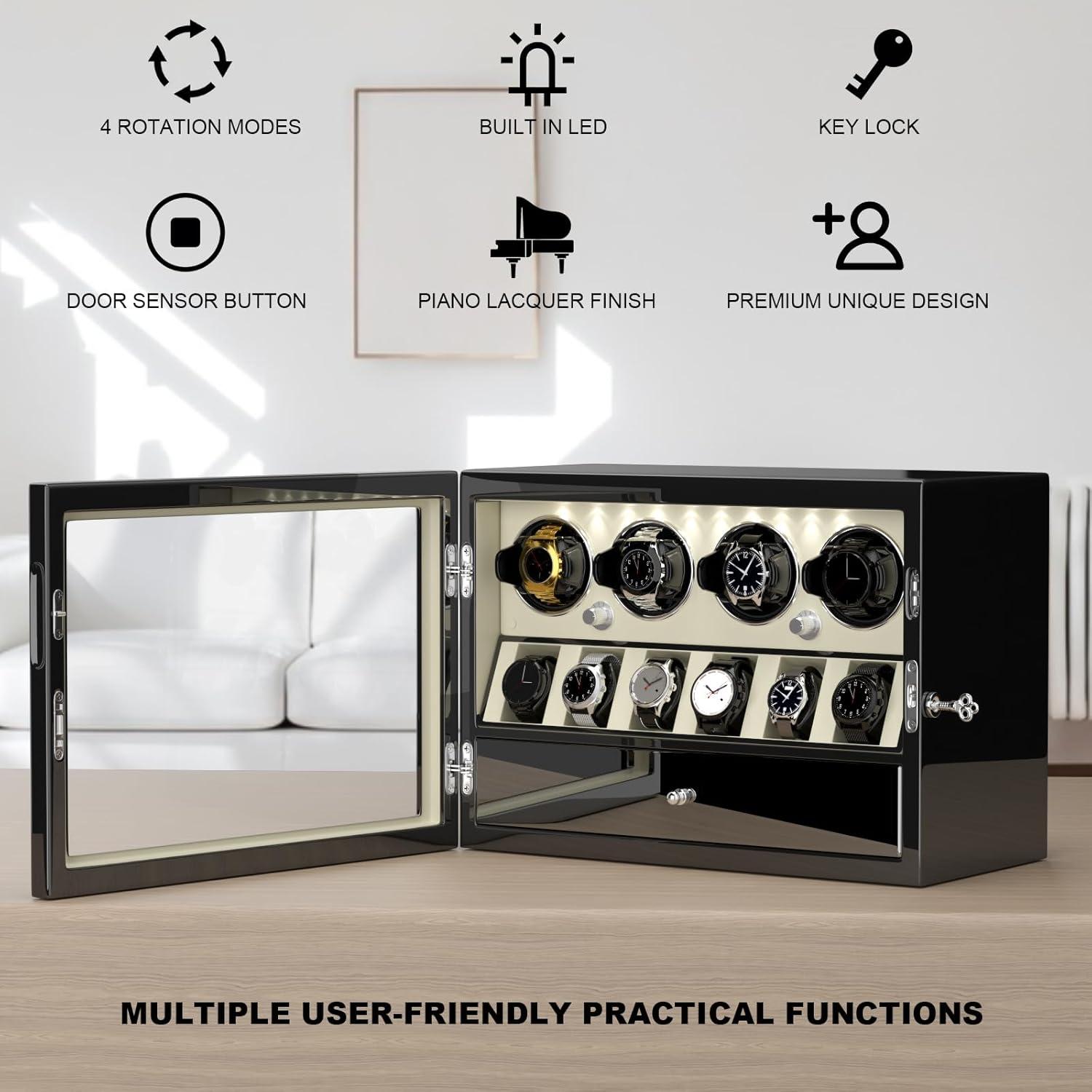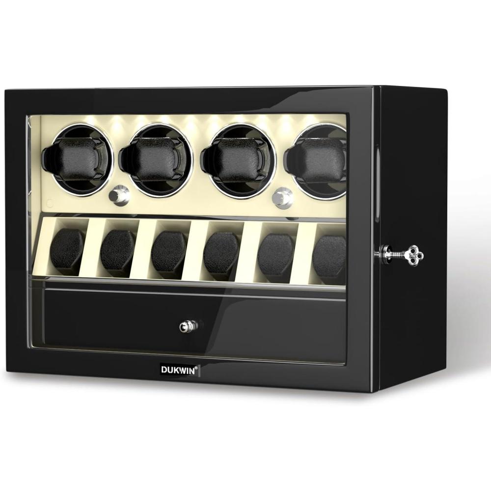 imageDUKWIN Watch Winder for 468 Automatic Watches Lockable Winders with Watch Holders and Jewelry Storage Super Quiet Motor with HighGloss Finish Builtin IlluminationWhite Watch Winders for 6 Watches